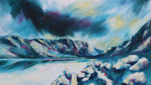 I ran each day to these locations along the Cape Wrath Trail, carrying a heavy load of art gear, including my pochade box, paints, brushes and canvas boards. These were two of the many beautiful views along the way (Loch Glencoul, Loch Beag and Loch Glendhu) , with plein air studies started as runners came past and then finishing the larger canvases this week in the studio. Find more detail on the gallery page and in the shop.